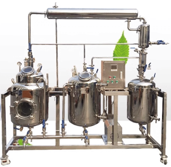 2.本設(shè)備配備:提取罐、除沫器、臥式冷凝器、立式冷卻器、油水分離器、集液罐、中間緩沖罐、真空泵、控制柜等配套